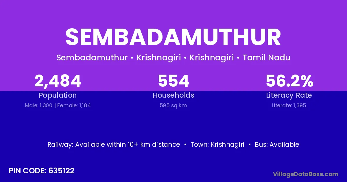Krishnagiri is the nearest town to Sembadamuthur village for major economic activities