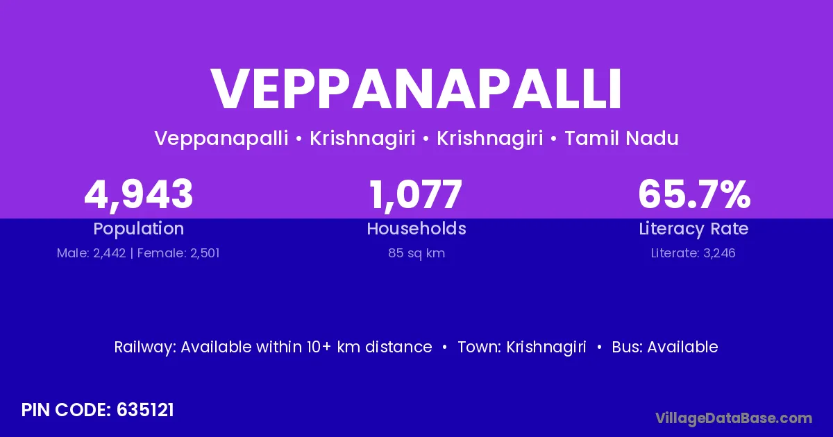 Krishnagiri is the nearest town to Veppanapalli village for major economic activities