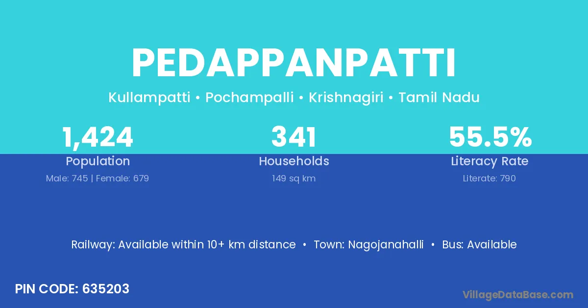 Nagojanahalli is the nearest town to Pedappanpatti village for major economic activities