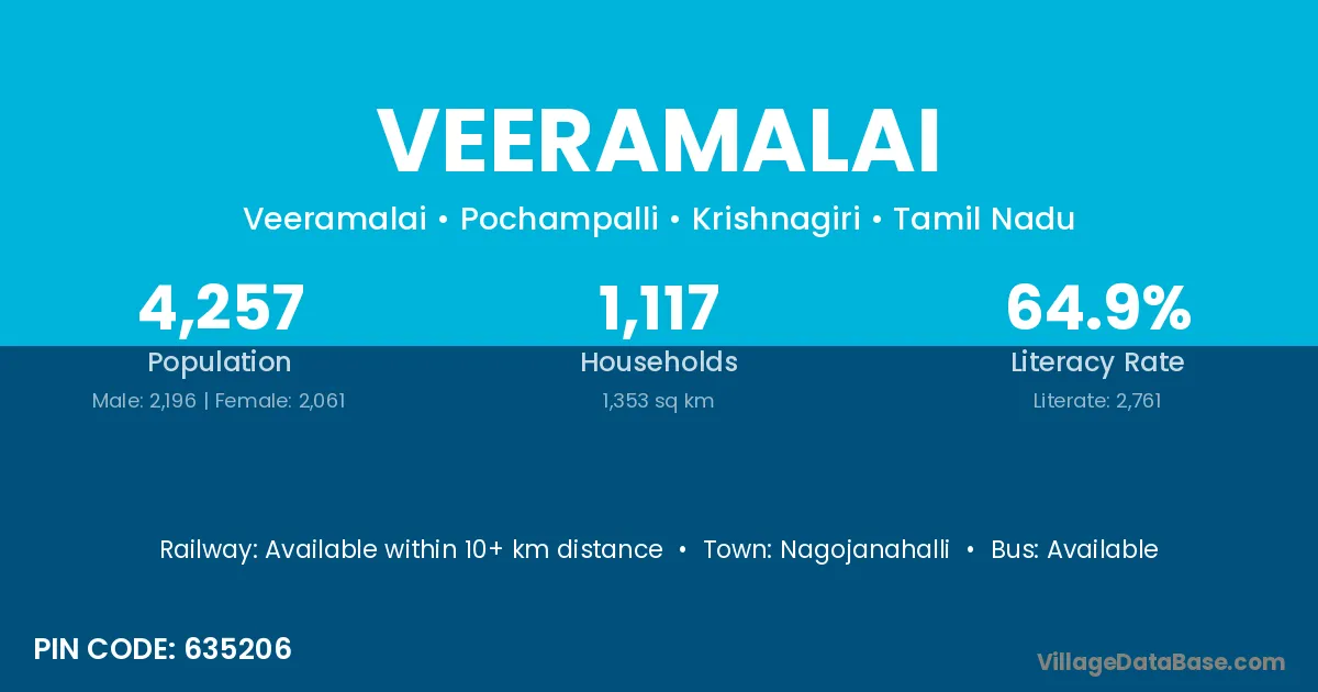 According to Census 2011 information, the village code of Veeramalai village is 635206.