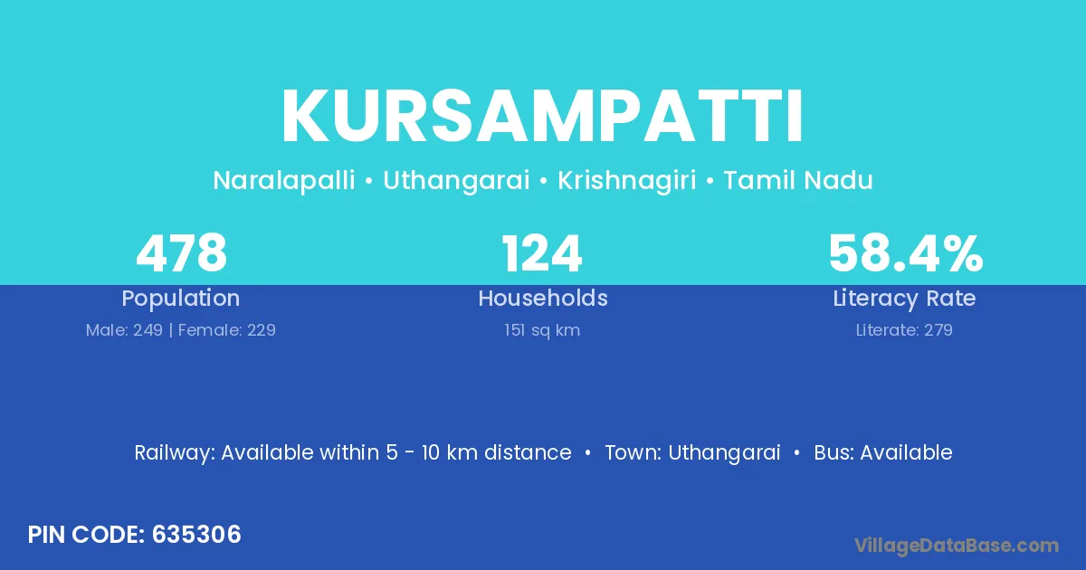 Kursampatti village has a total population of 478 people, of which 249 are males and 229 are females.