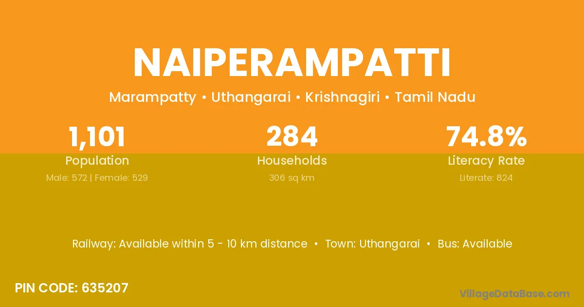 Uthangarai is the nearest town to Naiperampatti village for major economic activities