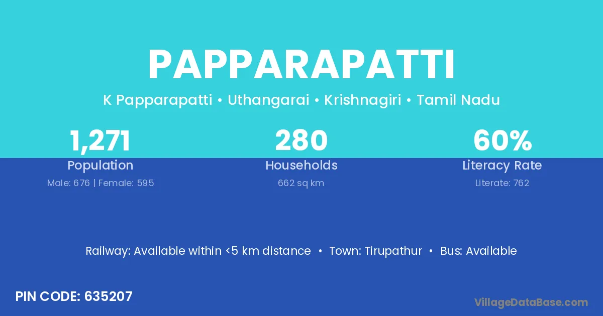 Papparapatti village has a total population of 1,271 people, of which 676 are males and 595 are females.