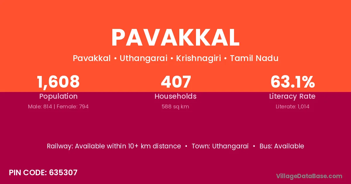 Uthangarai is the nearest town to Pavakkal village for major economic activities