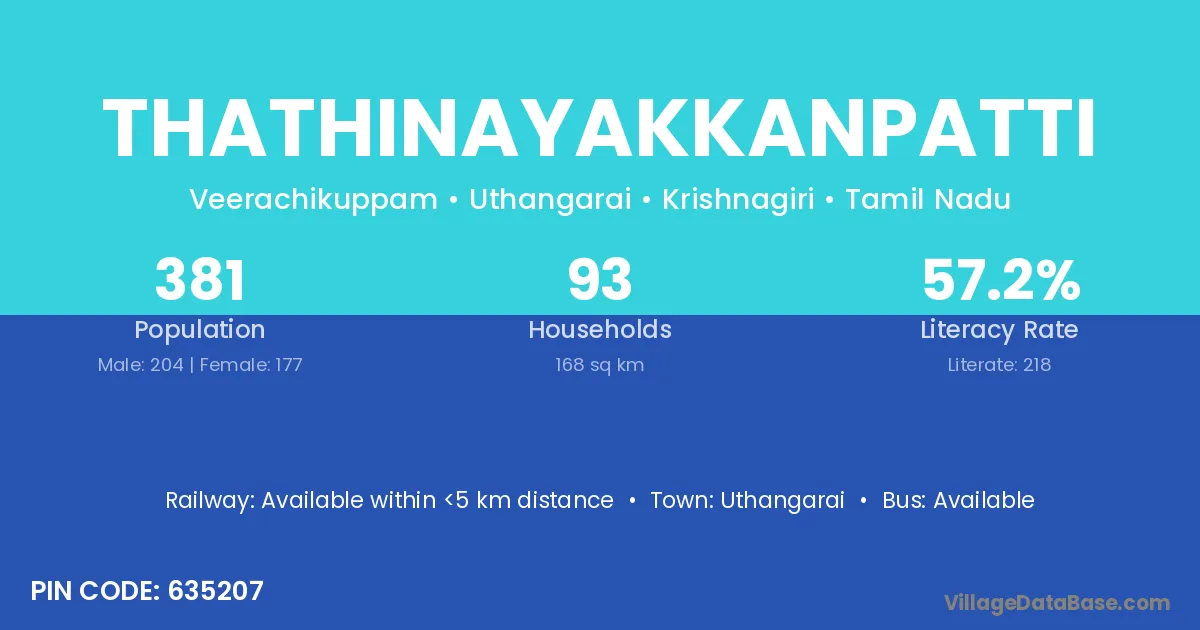 Uthangarai is the nearest town to Thathinayakkanpatti village for major economic activities