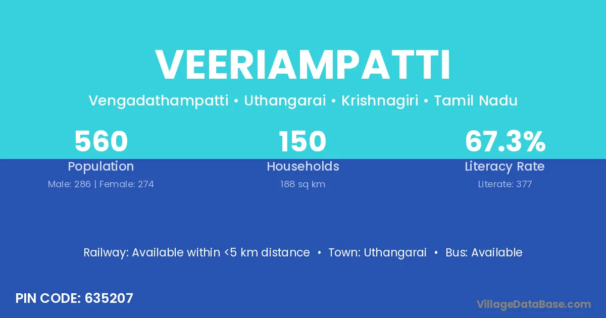 Uthangarai is the nearest town to Veeriampatti village for major economic activities