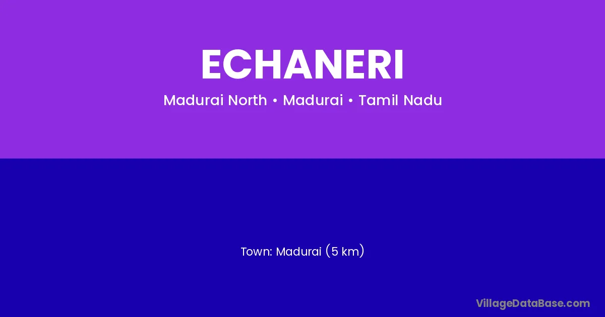 Madurai (5 km) is the nearest town to Echaneri village for major economic activities and is located approximately 5 km away.