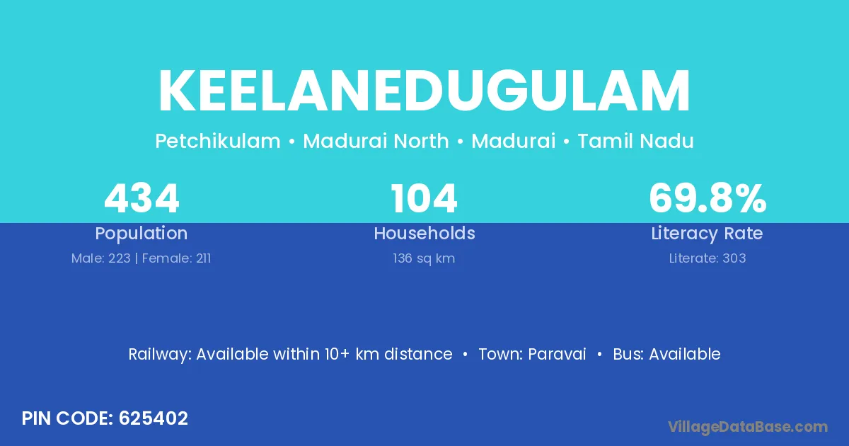 Paravai is the nearest town to Keelanedugulam village for major economic activities