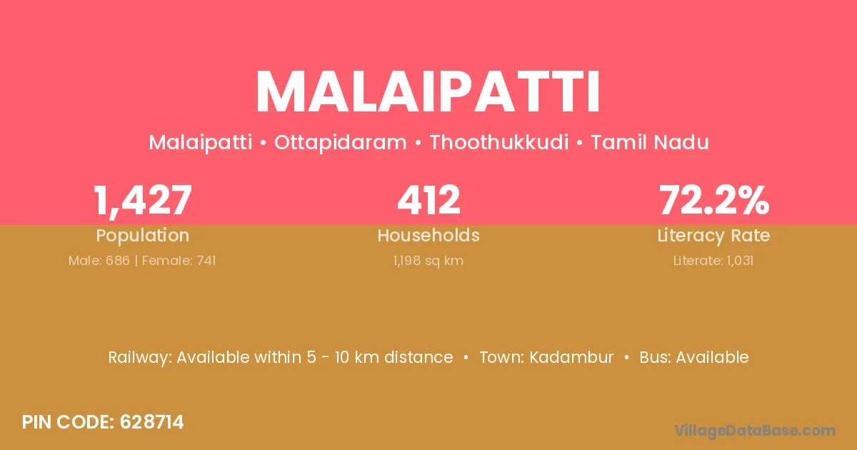 According to Census 2011 information, the village code of Malaipatti village is 625501.