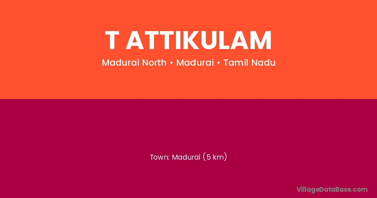 Madurai (5 km) is the nearest town to T Attikulam village for major economic activities and is located approximately 5 km away.