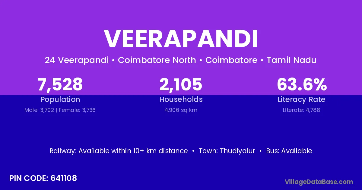 According to Census 2011 information, the village code of Veerapandi village is 625014.