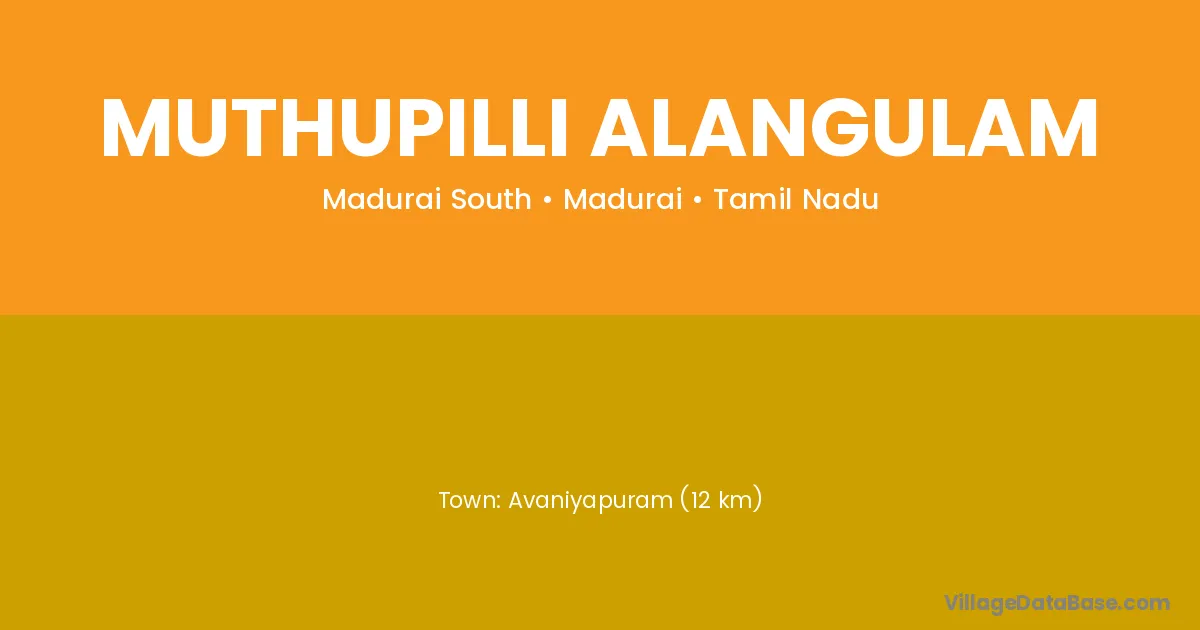 Avaniyapuram (12 km) is the nearest town to Muthupilli Alangulam village for major economic activities and is located approximately 12 km away.