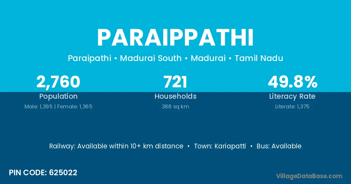 Kariapatti is the nearest town to Paraippathi village for major economic activities
