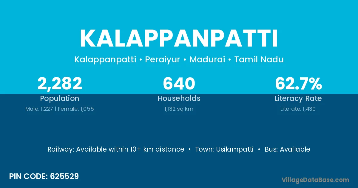Usilampatti is the nearest town to Kalappanpatti village for major economic activities