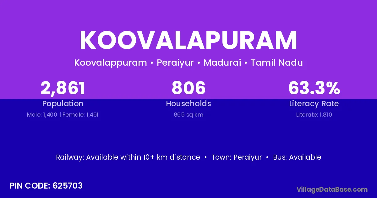 There are approximately 806 households in Koovalapuram village.