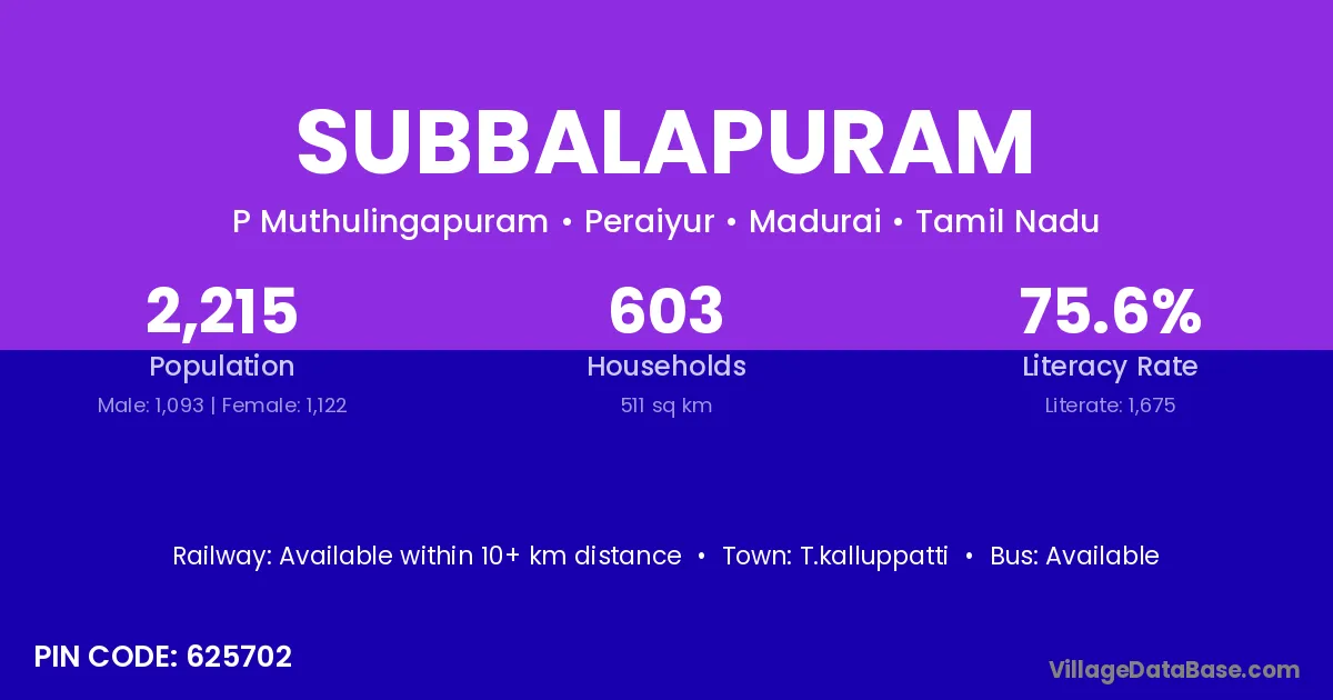 According to Census 2011 information, the village code of Subbalapuram village is 625702.