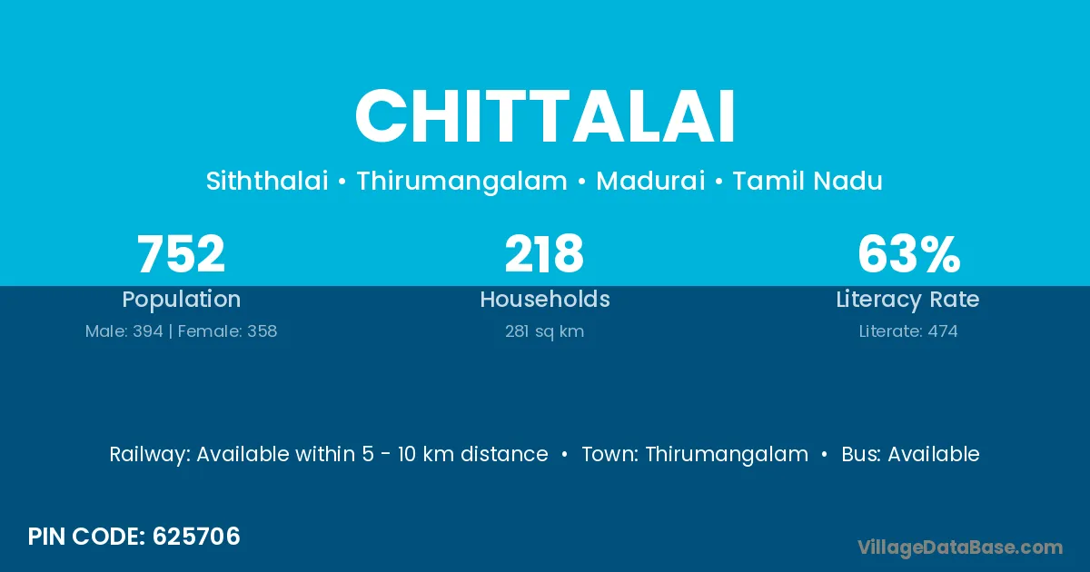 Thirumangalam is the nearest town to Chittalai village for major economic activities