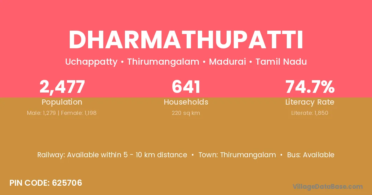 According to Census 2011 information, the village code of Dharmathupatti village is 625706.