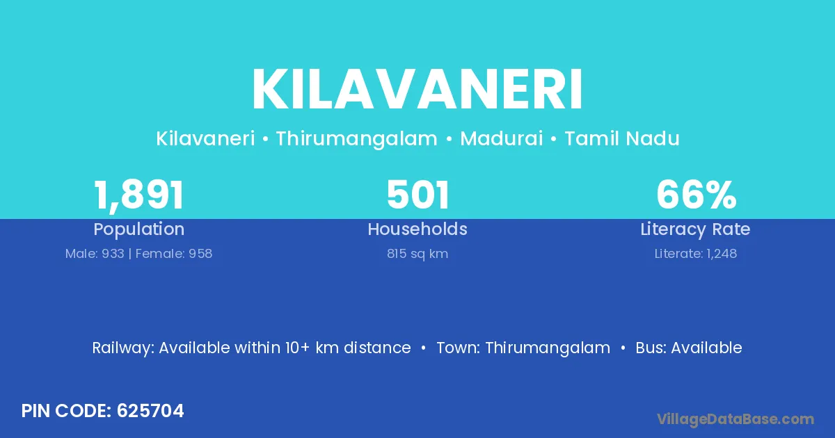 According to Census 2011 information, the village code of Kilavaneri village is 625704.
