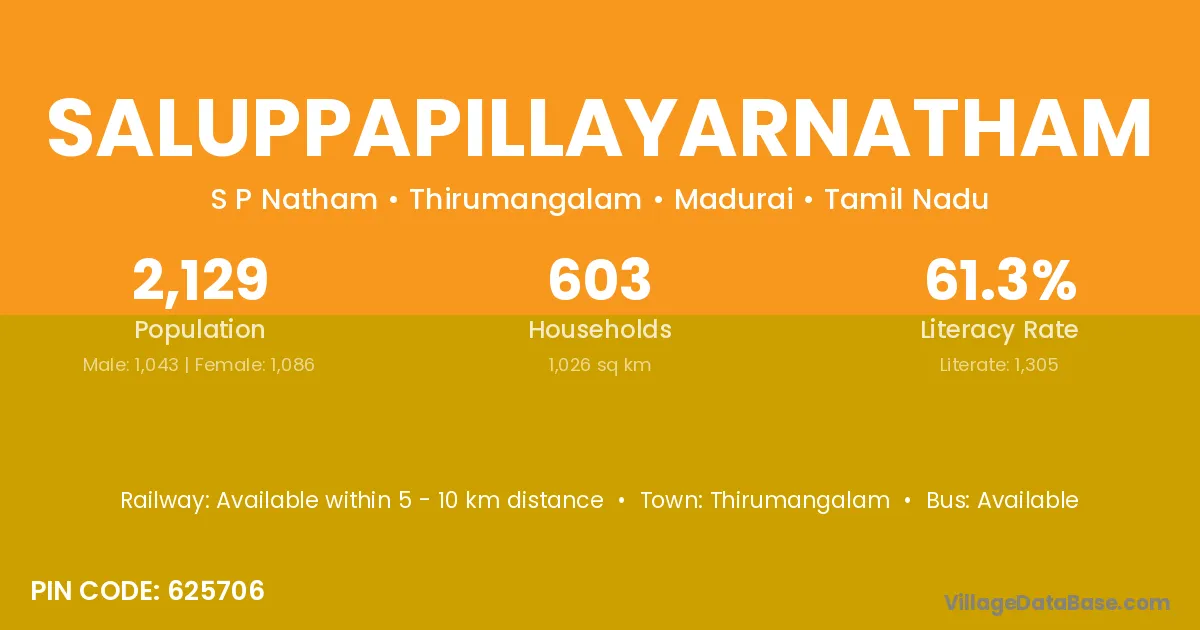 Thirumangalam is the nearest town to Saluppapillayarnatham village for major economic activities