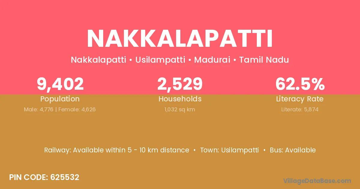 Usilampatti is the nearest town to Nakkalapatti village for major economic activities