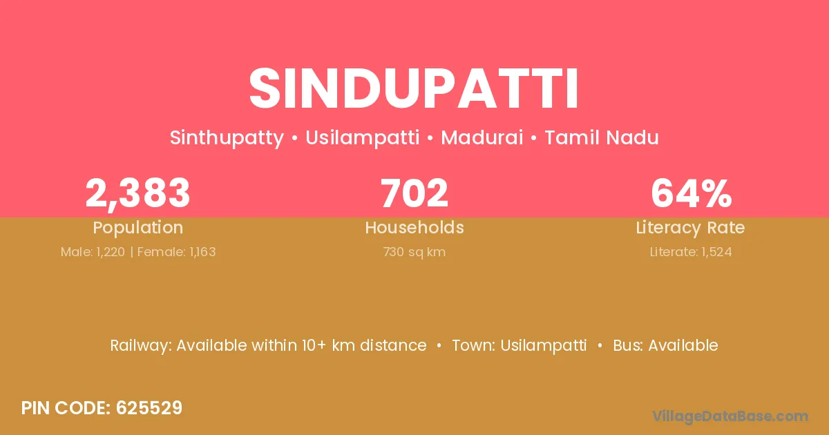 Usilampatti is the nearest town to Sindupatti village for major economic activities