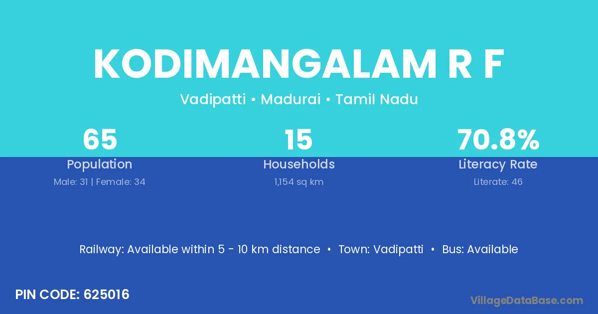 Vadipatti is the nearest town to Kodimangalam R F village for major economic activities