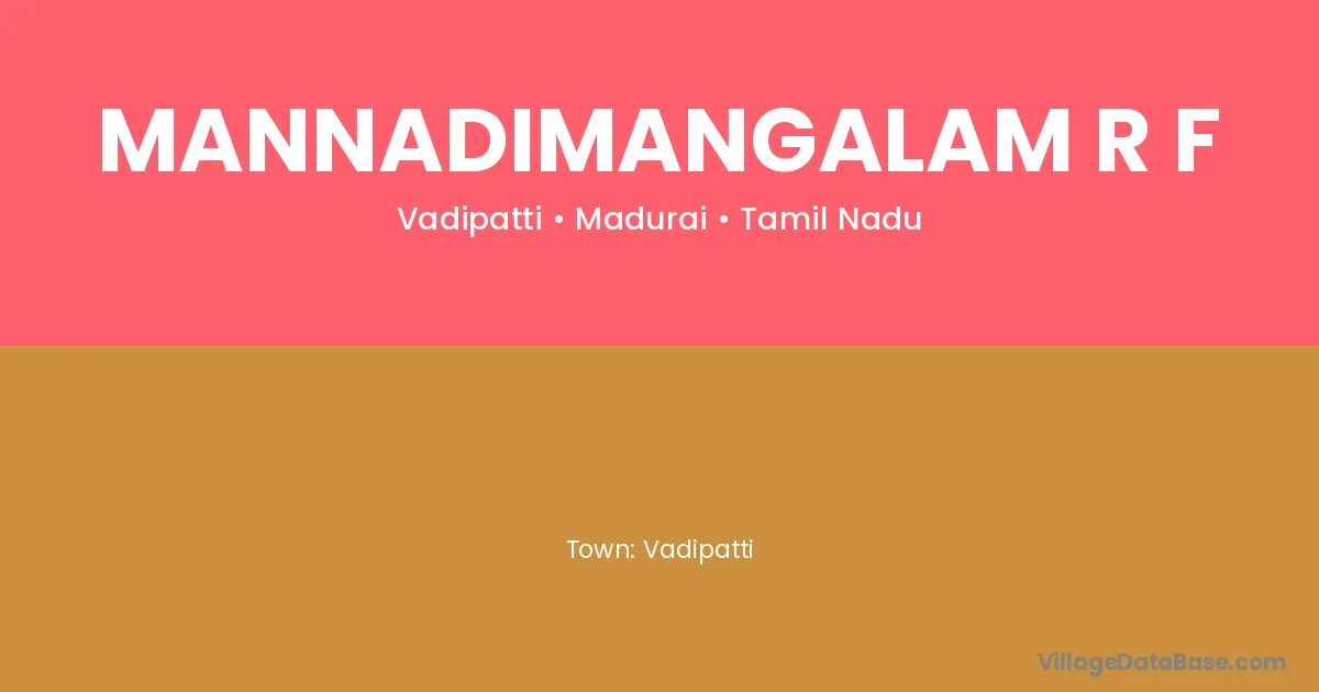 Vadipatti is the nearest town to Mannadimangalam R F village for major economic activities