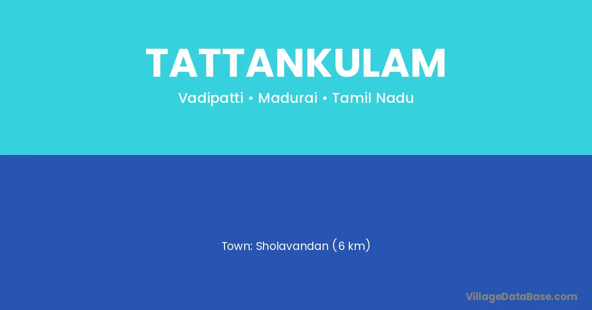 Sholavandan (6 km) is the nearest town to Tattankulam village for major economic activities and is located approximately 6 km away.
