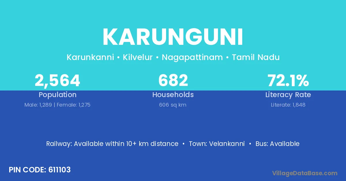 Velankanni is the nearest town to Karunguni village for major economic activities
