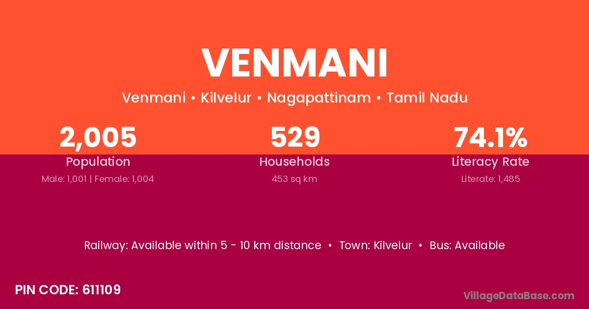 According to Census 2011 information, the village code of Venmani village is 611109.