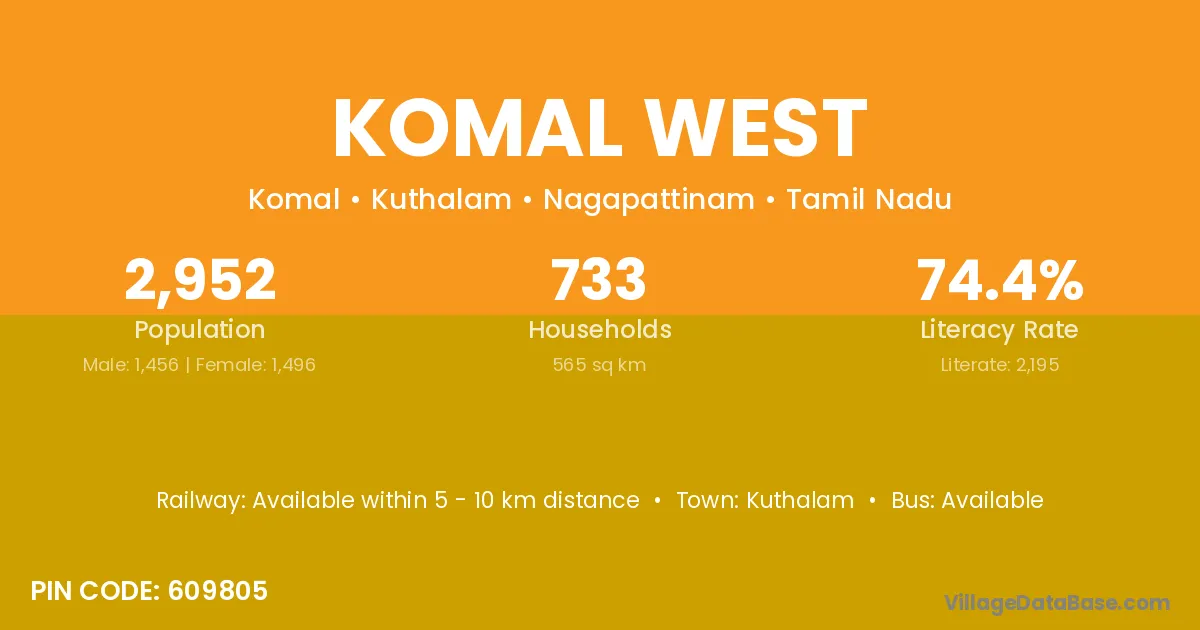 Kuthalam is the nearest town to Komal West village for major economic activities