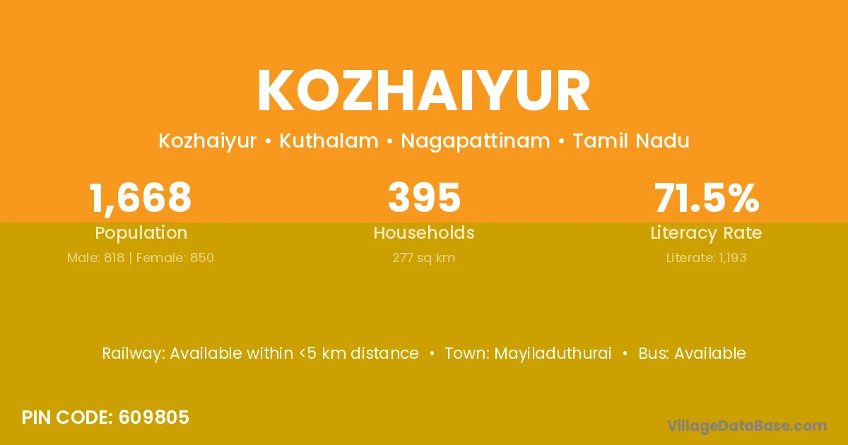 Mayiladuthurai is the nearest town to Kozhaiyur village for major economic activities