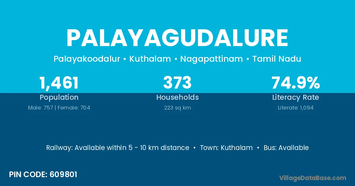 Kuthalam is the nearest town to Palayagudalure village for major economic activities