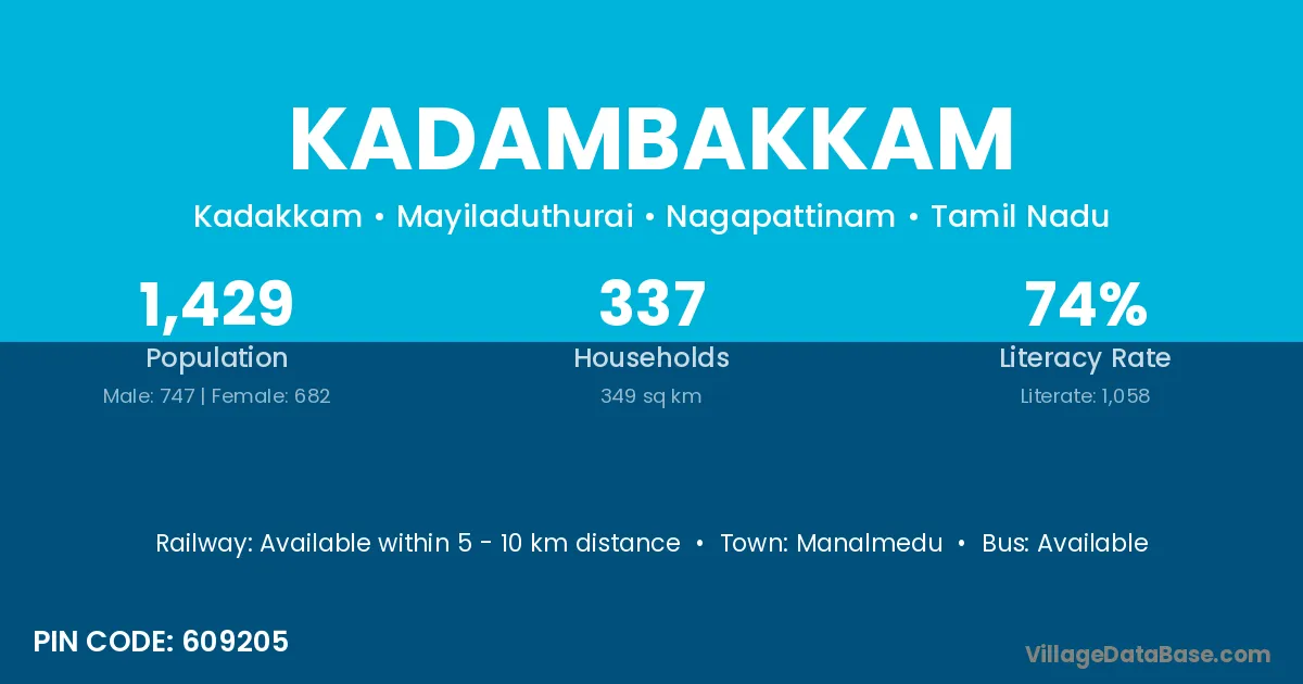 Manalmedu is the nearest town to Kadambakkam village for major economic activities