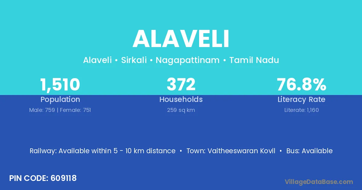 Vaitheeswaran Kovil is the nearest town to Alaveli village for major economic activities