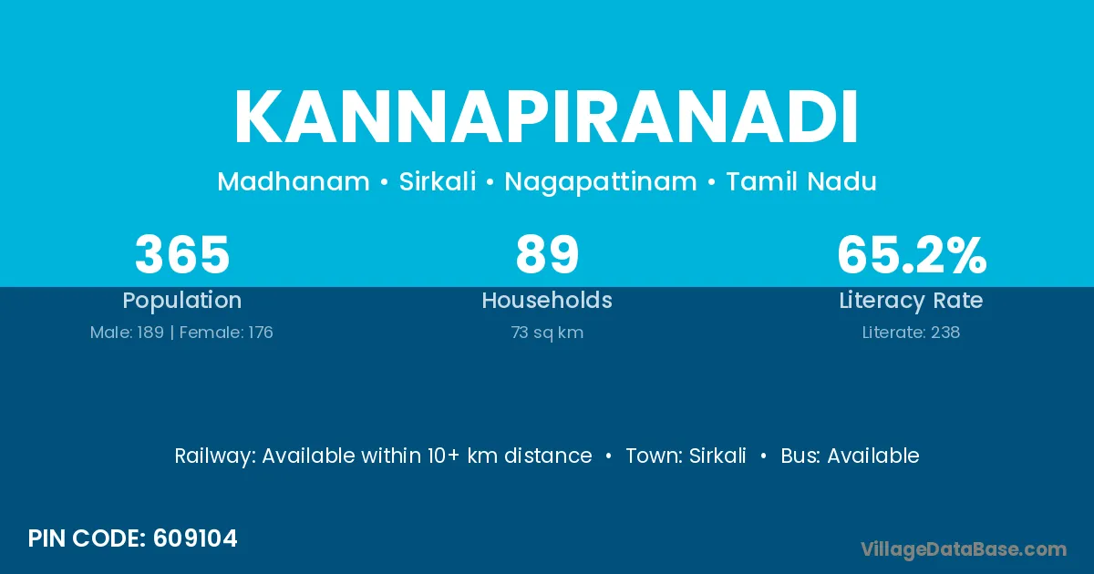 Sirkali is the nearest town to Kannapiranadi village for major economic activities