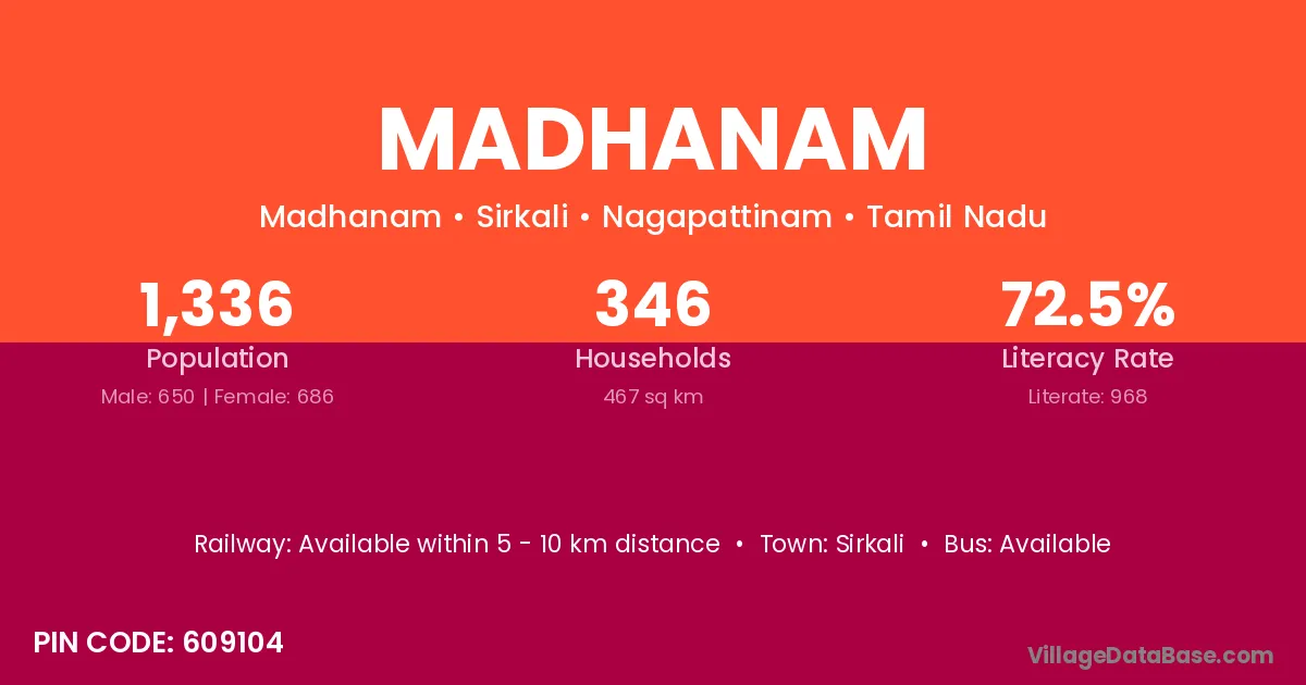 Sirkali is the nearest town to Madhanam village for major economic activities