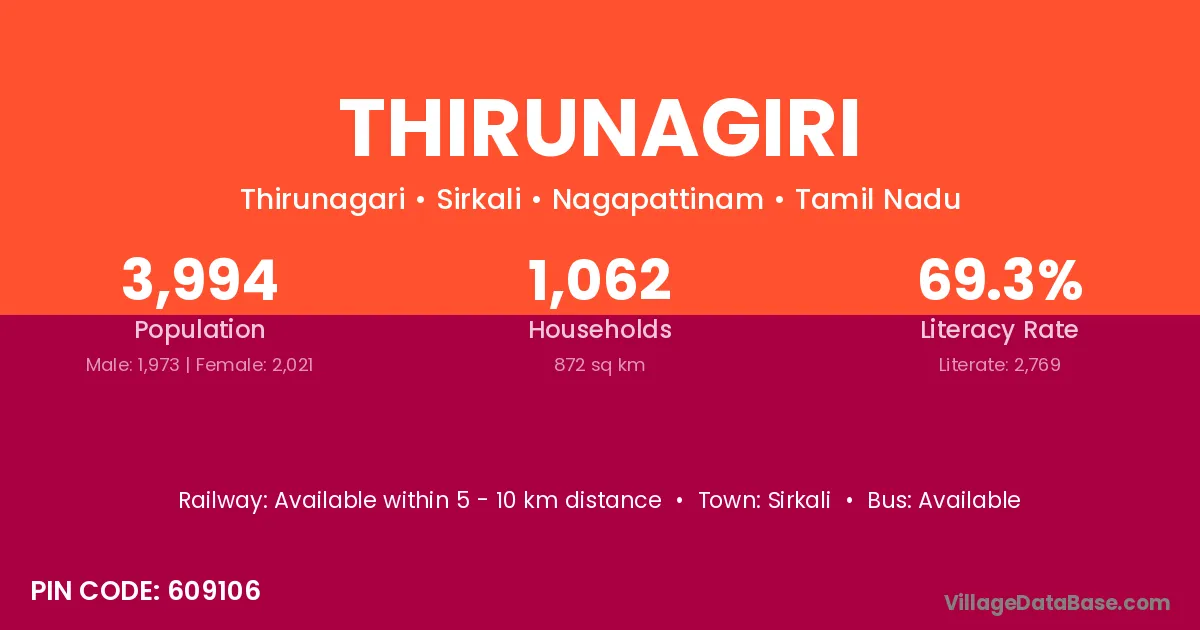 Sirkali is the nearest town to Thirunagiri village for major economic activities