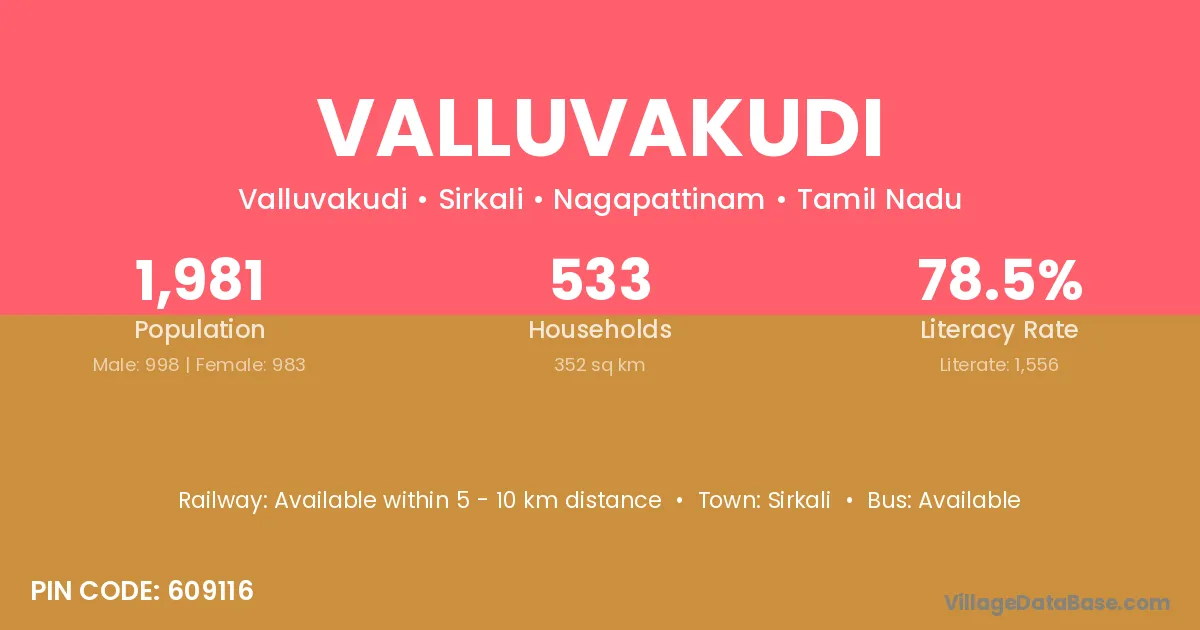 Sirkali is the nearest town to Valluvakudi village for major economic activities