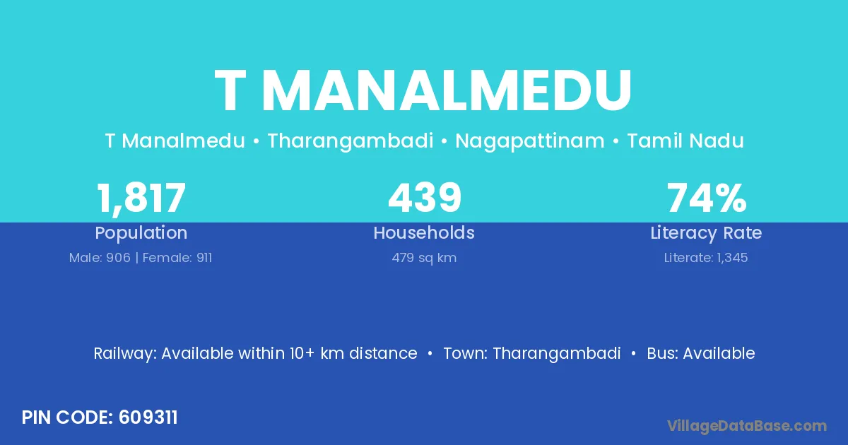 There are approximately 439 households in T Manalmedu village.