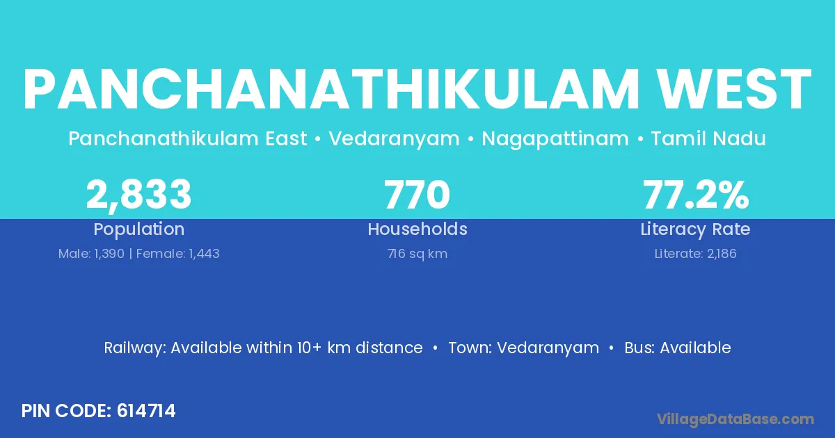Vedaranyam is the nearest town to Panchanathikulam West village for major economic activities