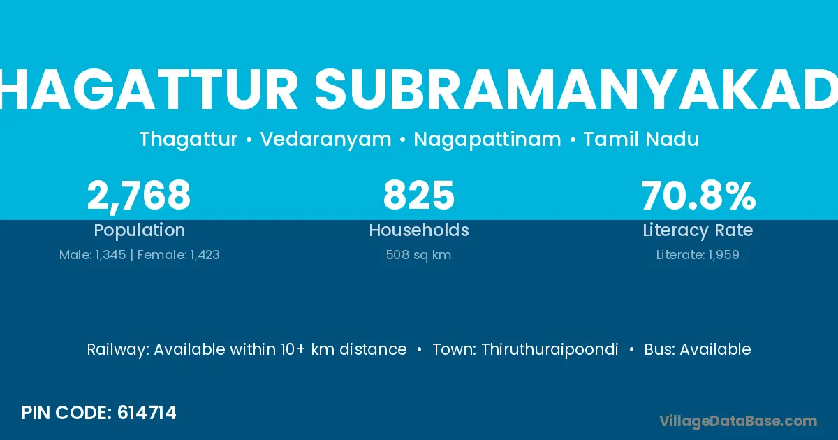 According to Census 2011 information, the village code of Thagattur Subramanyakadu village is 614714.