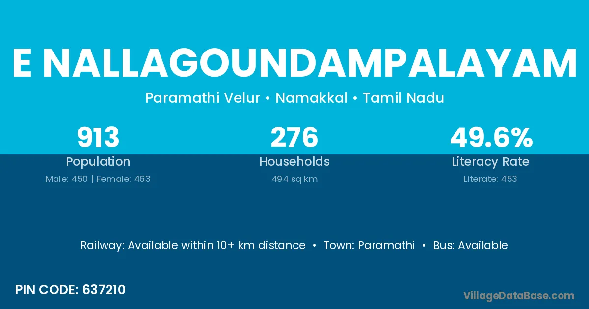 Paramathi is the nearest town to E Nallagoundampalayam village for major economic activities