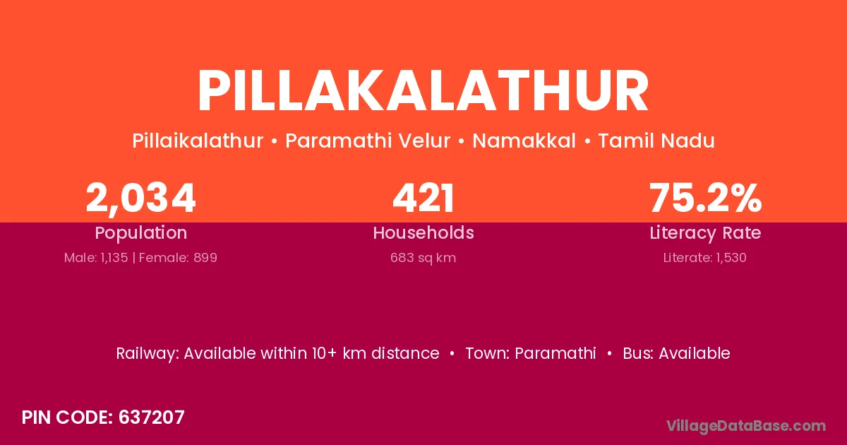 Paramathi is the nearest town to Pillakalathur village for major economic activities