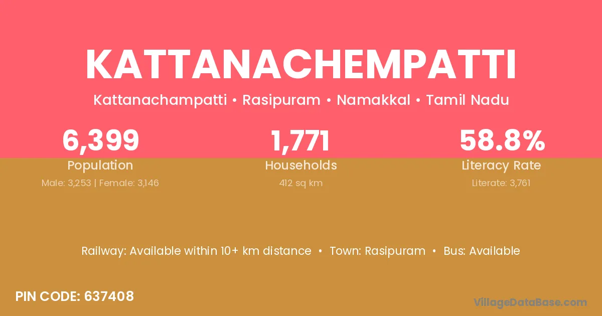 Kattanachempatti village has a total population of 6,399 people, of which 3,253 are males and 3,146 are females.