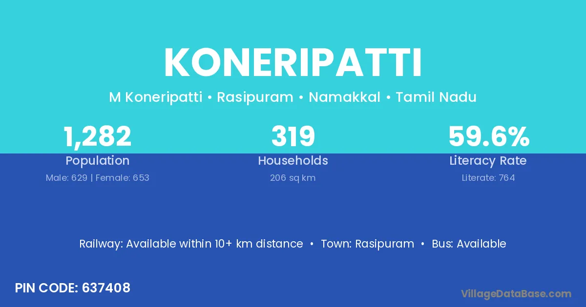 Rasipuram is the nearest town to Koneripatti village for major economic activities