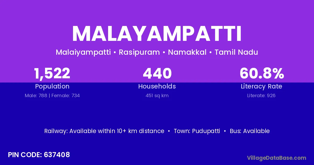 Pudupatti is the nearest town to Malayampatti village for major economic activities