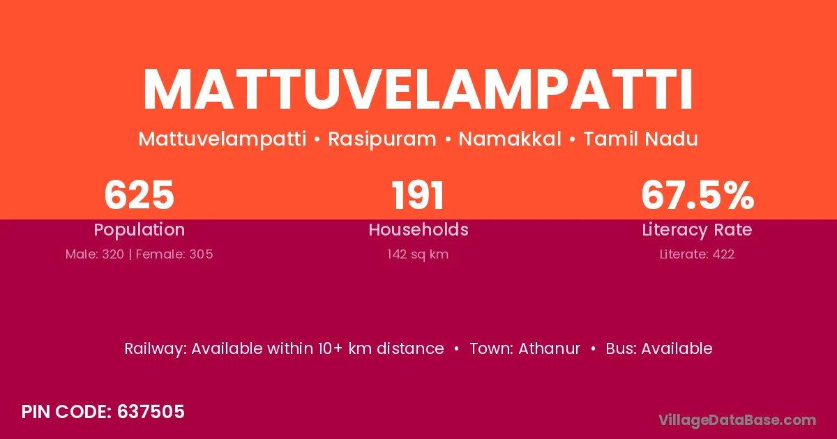 According to Census 2011 information, the village code of Mattuvelampatti village is 637505.