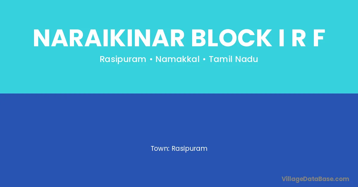 Naraikinar Block I R F village is located in the Rasipuram Taluka of the Namakkal district in Tamil Nadu .